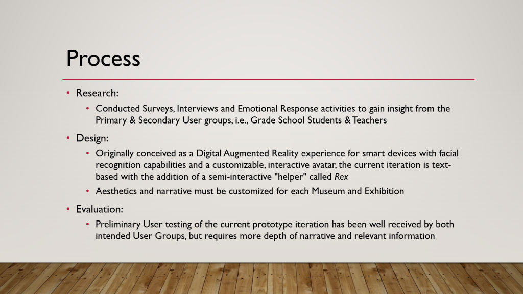This project demonstrates an effective investigation into information environments, as well as audience needs, behaviors, and experiences through appropriate research methods and data analysis. Because of this, I believe the totality of my work in creating DINOcent demonstrates well the Research Student Learning Outcome.